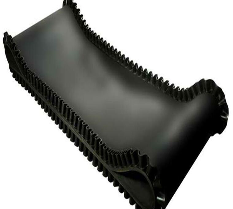 稱重給煤機(jī)、給料機(jī)、配料秤等用的輸送計(jì)量膠帶,輸送膠帶采用環(huán)形波紋擋邊(裙邊)皮帶,裙邊高度為40mm、60mm,耐高溫。裙邊采用波紋式,具有極大的優(yōu)越性,當(dāng)膠帶通過滾筒時,裙邊外側(cè)成扇行張開,整個裙邊連續(xù)無縫隙。煤不會從縫隙處散落,同時也不會使小塊煤夾卡在縫隙中,延長膠帶壽命,防止煤向兩側(cè)溢出。