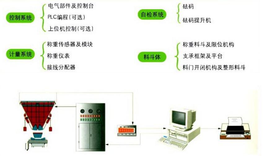 電氣控制系統、計量系統、自檢系統、料斗體組成,具體內容參看下表: