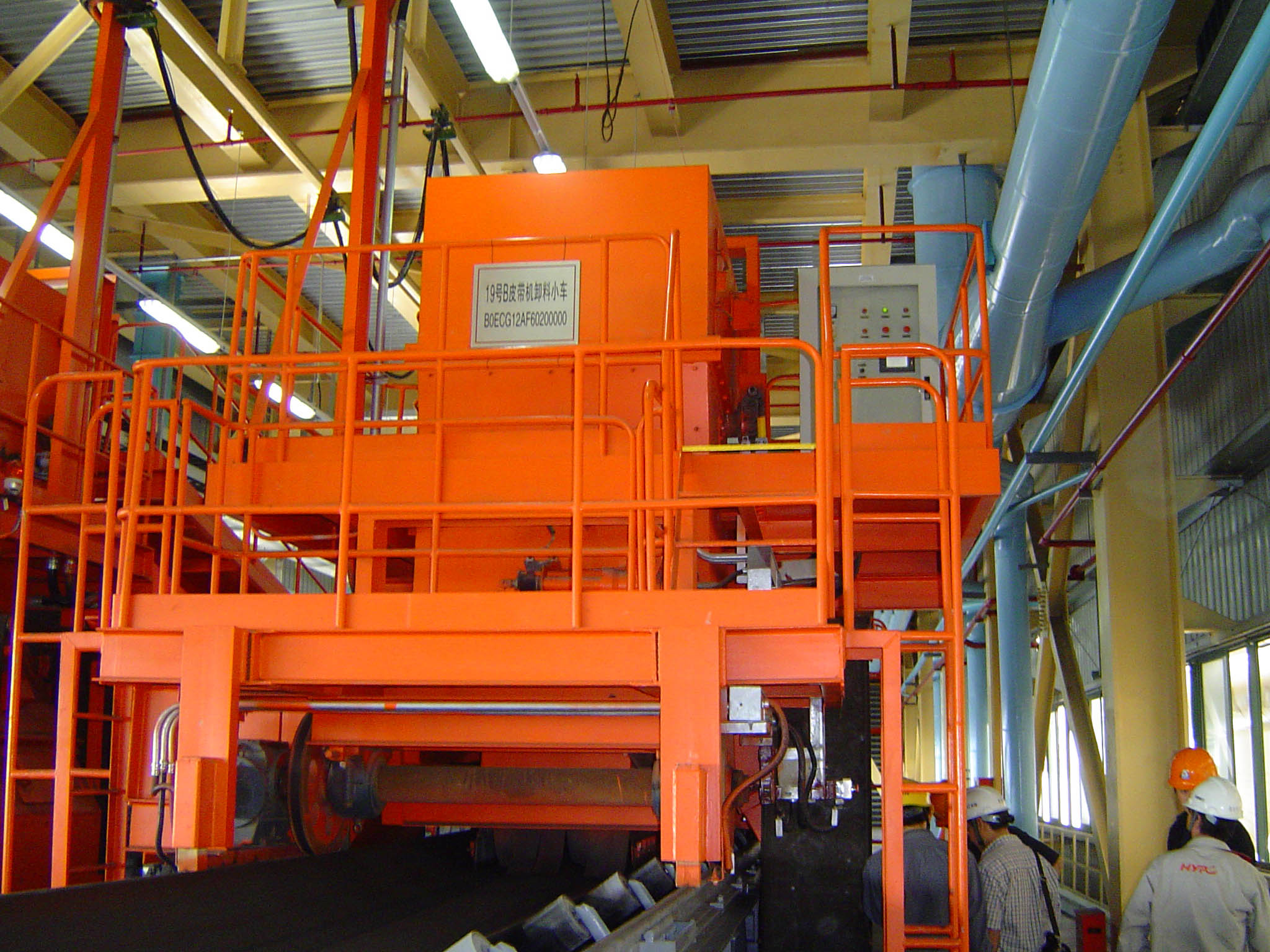 8.由于輸送帶通過卸料車與皮帶機自身運動幾乎一樣,所以與其他卸料設(shè)備比較,大大地延長了輸送帶的使用壽命。