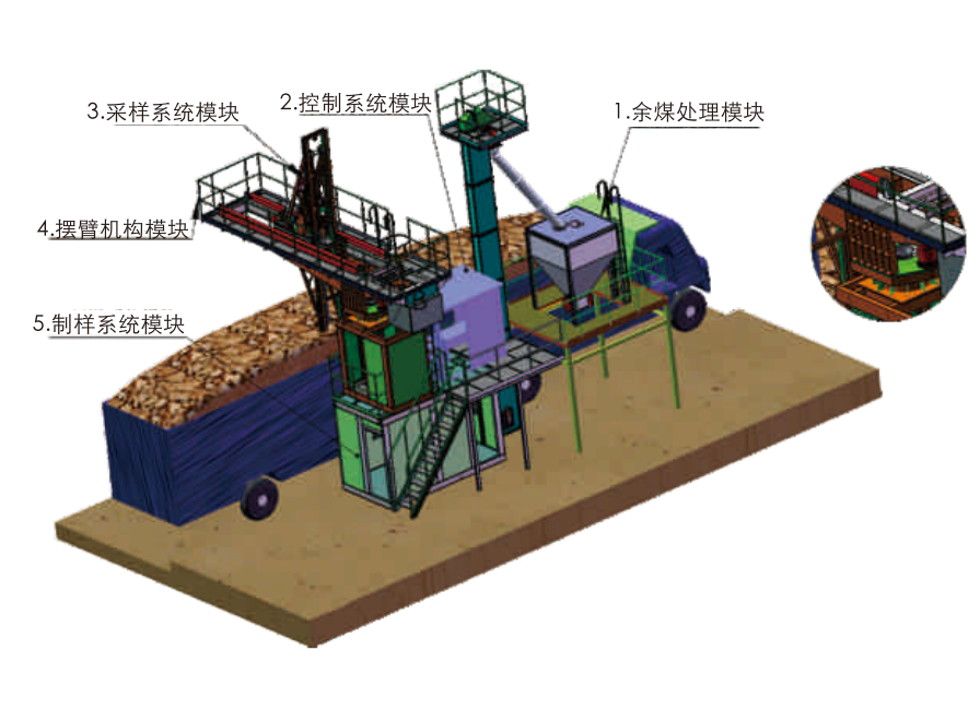 4、系統(tǒng)針對(duì)從運(yùn)煤汽車頂部采樣而設(shè)計(jì),集控制技術(shù)與機(jī)械手結(jié)構(gòu)于一體,能連續(xù)完成汽車煤采樣、制樣、縮分,并制成化驗(yàn)室所用煤樣。