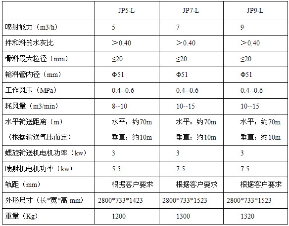 JP-L型濕噴機是用于濕式噴射混凝土的設備,是將骨料、水泥和水按設計比例拌和均勻,用濕式噴射機壓送到噴頭處,再在噴頭上添加速凝劑后噴出。濕噴混凝土質量容易控制,噴射過程中的粉塵和回彈量很少,是應當發展應用的噴射工藝,但對噴射機械要求高,機械清洗和故障處理較麻煩。與干、潮噴機相比,它具有作業粉塵小、噴射回彈少、保護工作環境、節省原材料、提高噴層質量等顯著優勢,而且操作維護方便。
