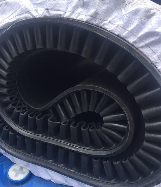 NJGC-30稱重給煤機、給料機、配料秤等用的輸送計量膠帶,輸送膠帶采用環形波紋擋邊(裙邊)皮帶,裙邊高度為40mm、60mm,耐高溫。裙邊采用波紋式,當膠帶通過滾筒時,裙邊外側成扇行張開,整個裙邊連續無縫隙。煤不會從縫隙處散落,同時也不會使小塊煤夾卡在縫隙中,延長膠帶壽命,防止煤向兩側溢出。