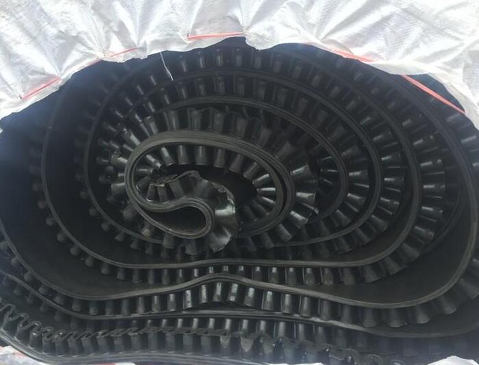 NJGC-30稱重給煤機、給料機、配料秤等用的輸送計量膠帶,輸送膠帶采用環形波紋擋邊(裙邊)皮帶,裙邊高度為40mm、60mm,耐高溫。裙邊采用波紋式,當膠帶通過滾筒時,裙邊外側成扇行張開,整個裙邊連續無縫隙。煤不會從縫隙處散落,同時也不會使小塊煤夾卡在縫隙中,延長膠帶壽命,防止煤向兩側溢出。