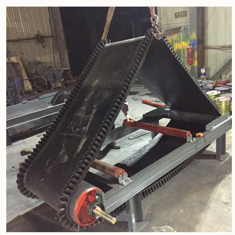NJGC-30稱重給煤機、給料機、配料秤等用的輸送計量膠帶,輸送膠帶采用環形波紋擋邊(裙邊)皮帶,裙邊高度為40mm、60mm,耐高溫。裙邊采用波紋式,當膠帶通過滾筒時,裙邊外側成扇行張開,整個裙邊連續無縫隙。煤不會從縫隙處散落,同時也不會使小塊煤夾卡在縫隙中,延長膠帶壽命,防止煤向兩側溢出。