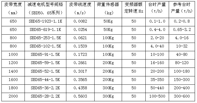 TDG調(diào)速定量給料機-主要技術(shù)參數(shù):